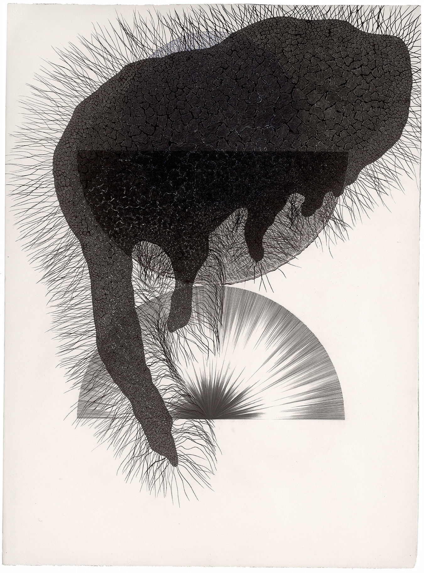 Excipient Interaction III (2013-14), ink, tape, graphite on paper, dimensions 76x56cm